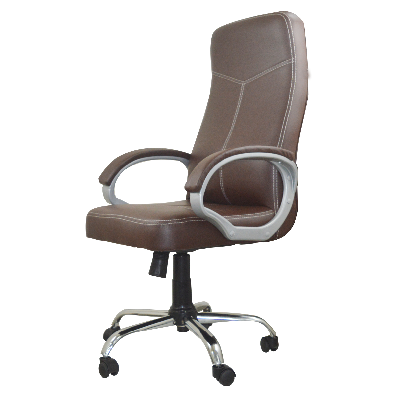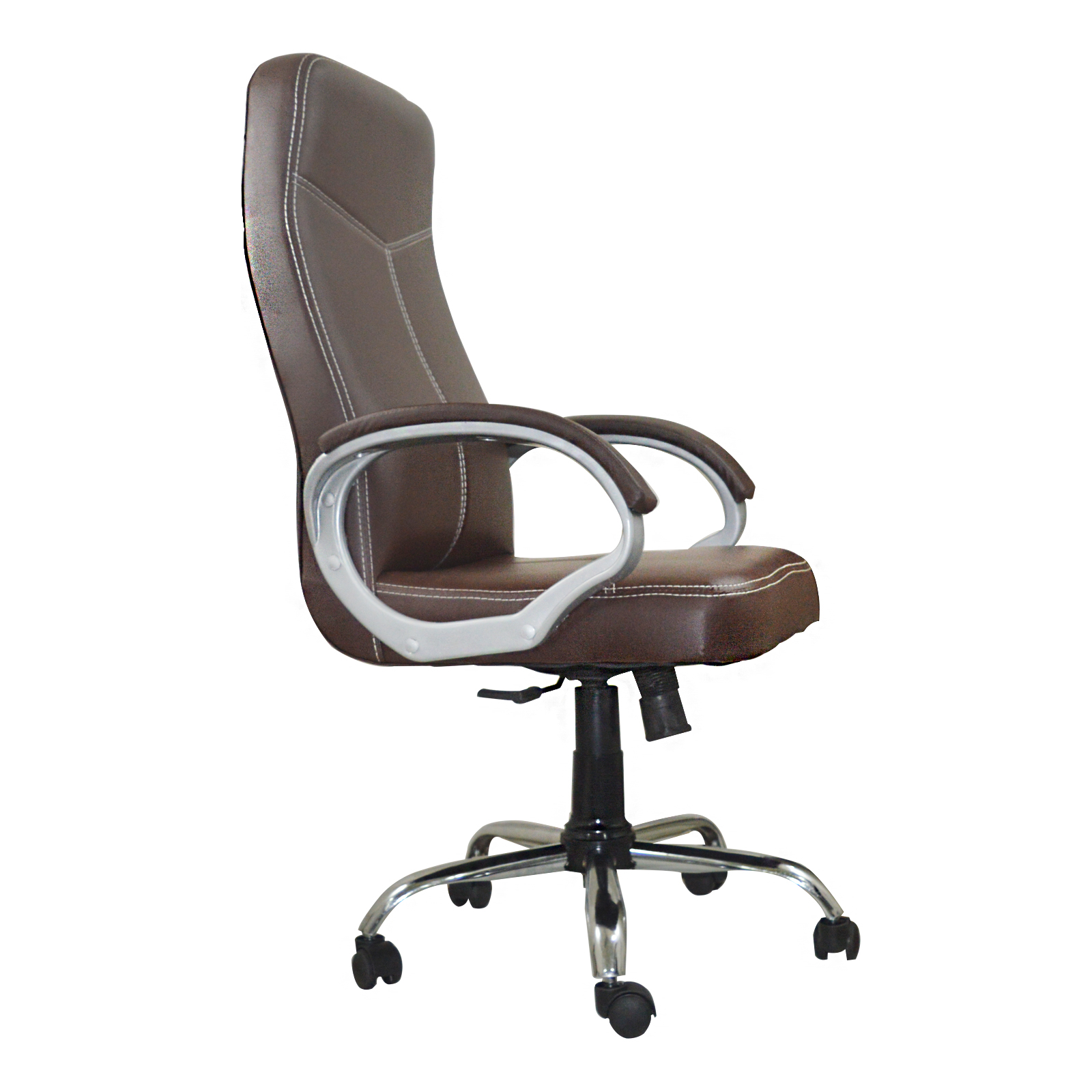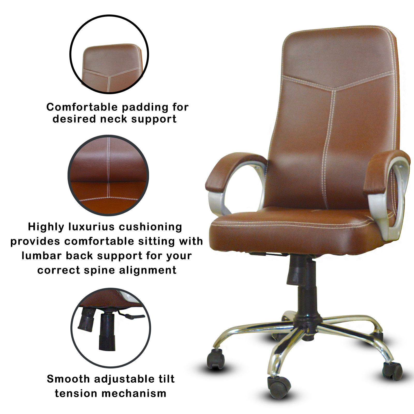 Specifications – Internal seat material : | Filled with – high density foam | Seat cover: leatherette | Color: dark brown | Size: high back | tilt lock | gas-lift: class 4 | Base: heavy duty metal base | Castors: nylon dual color wheels | Maximum weight capacity: up to 120 kgs | Height adjustment : 35-40 inches | Seat height : 19-23 inches | Seat width:19 inches |Seat depth : 18 inches | Back height : 18 inches |