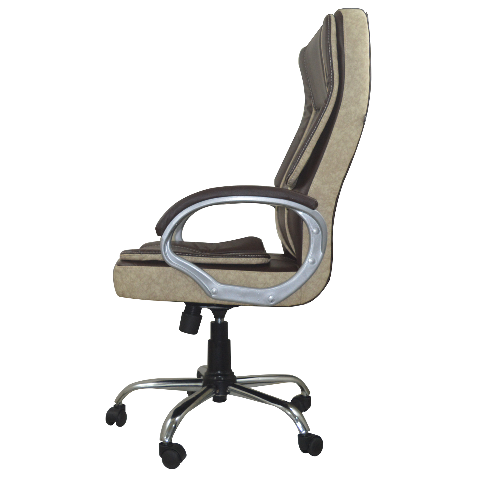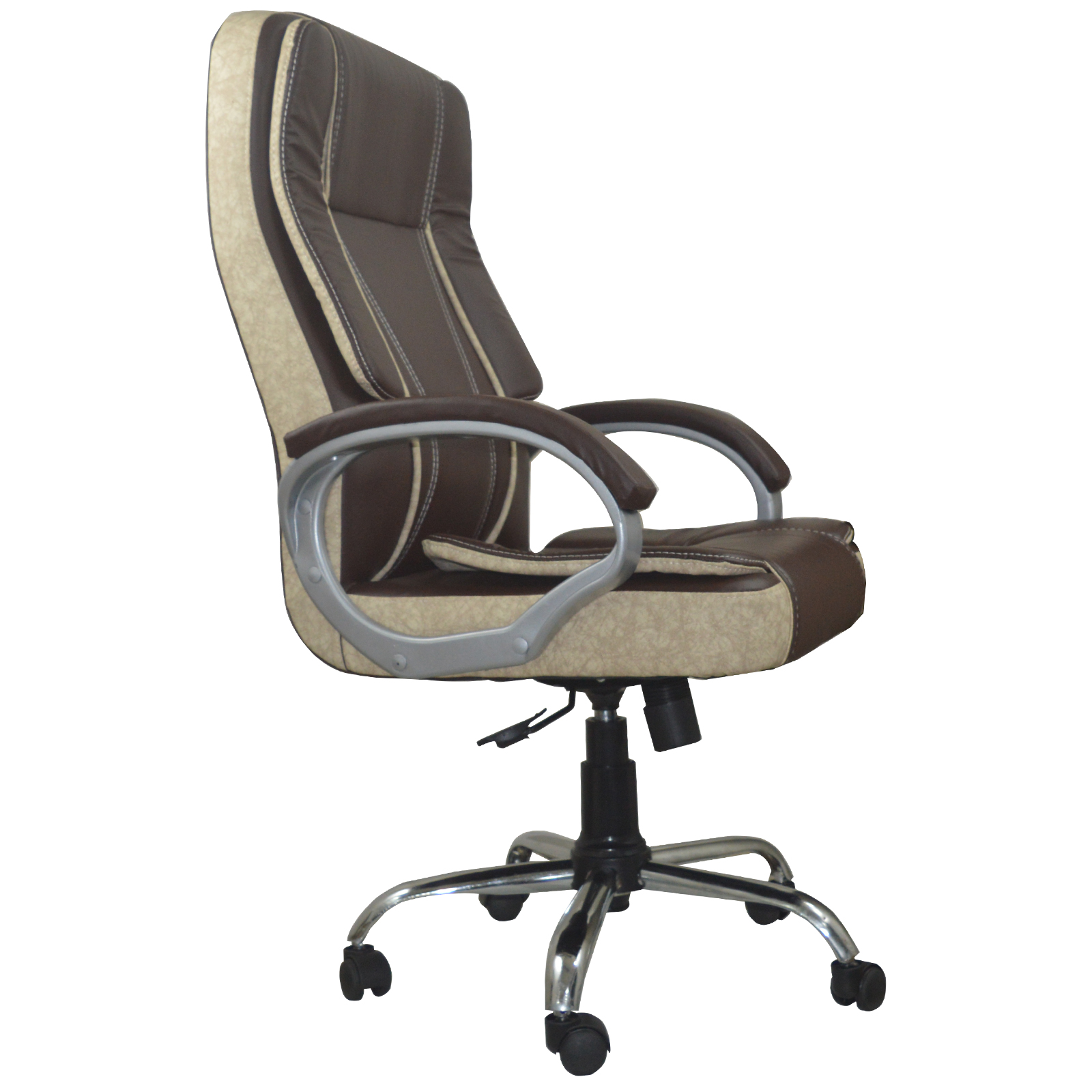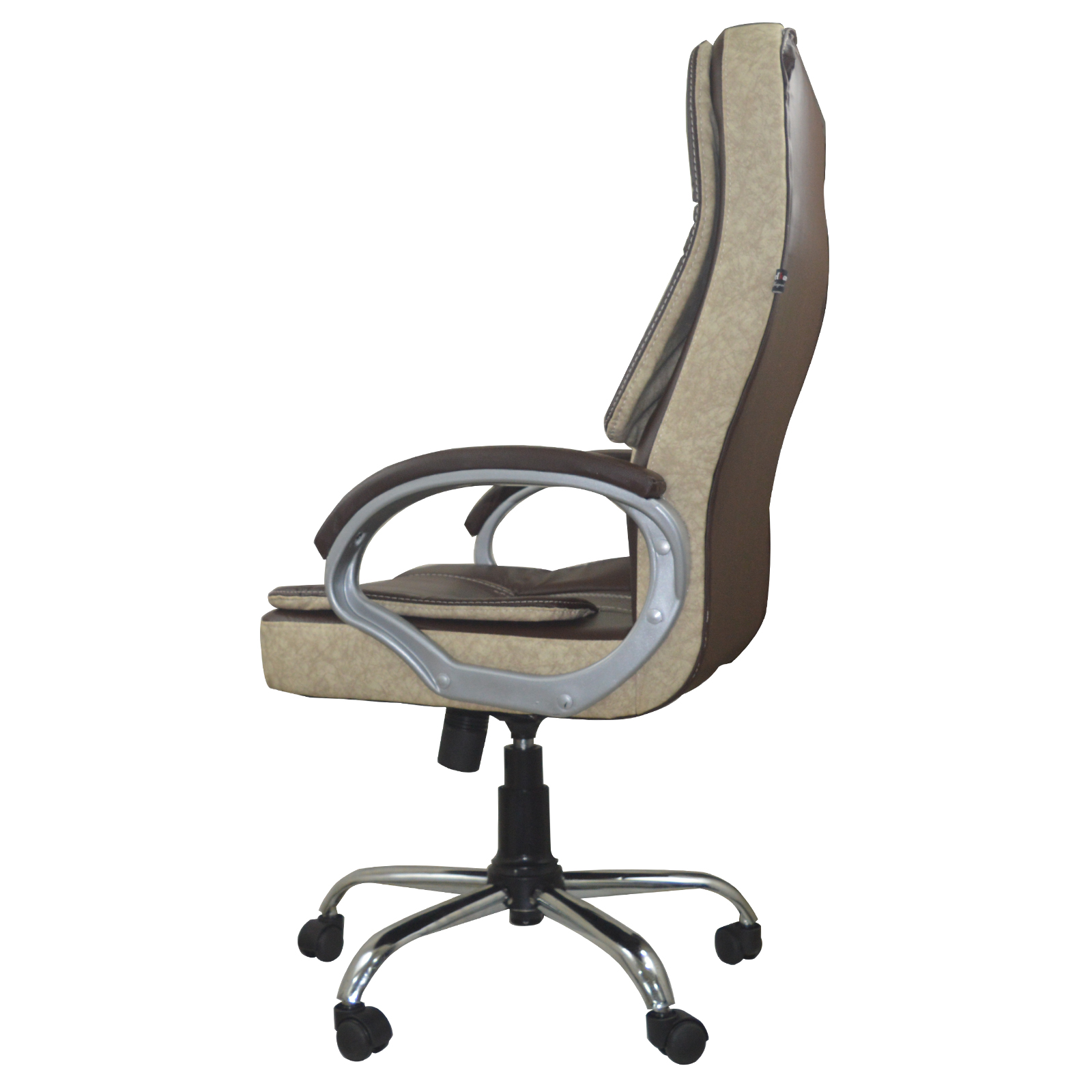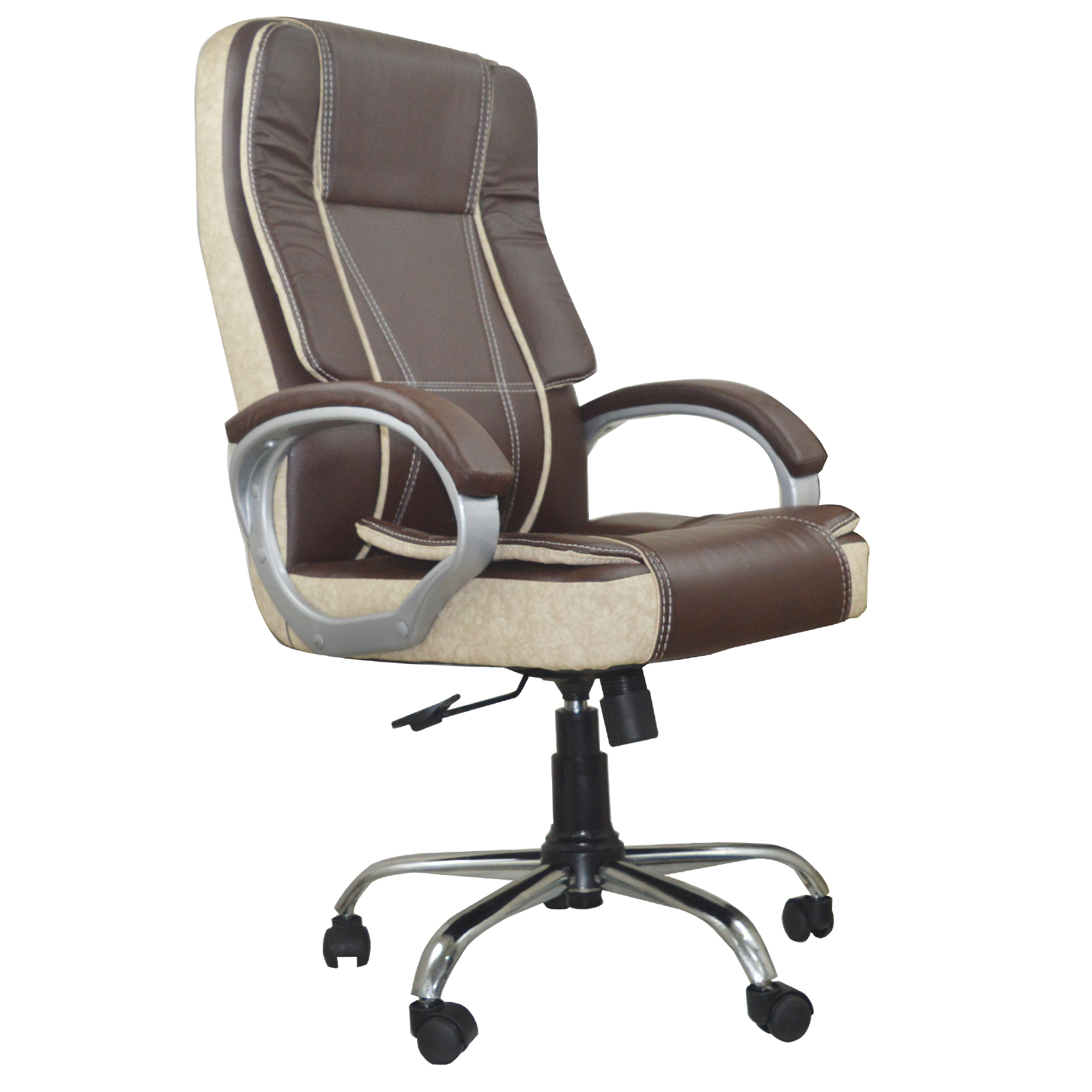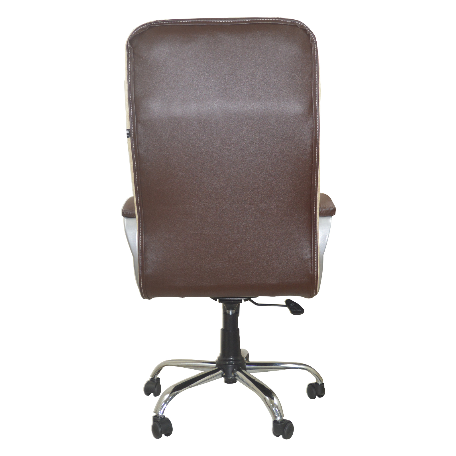 Revolving premium leatherette high back ergonomic chair with high level comfort seating, adjustable height and heavy duty metal base, available in dual tone color options [nutmeg brown and light grey]