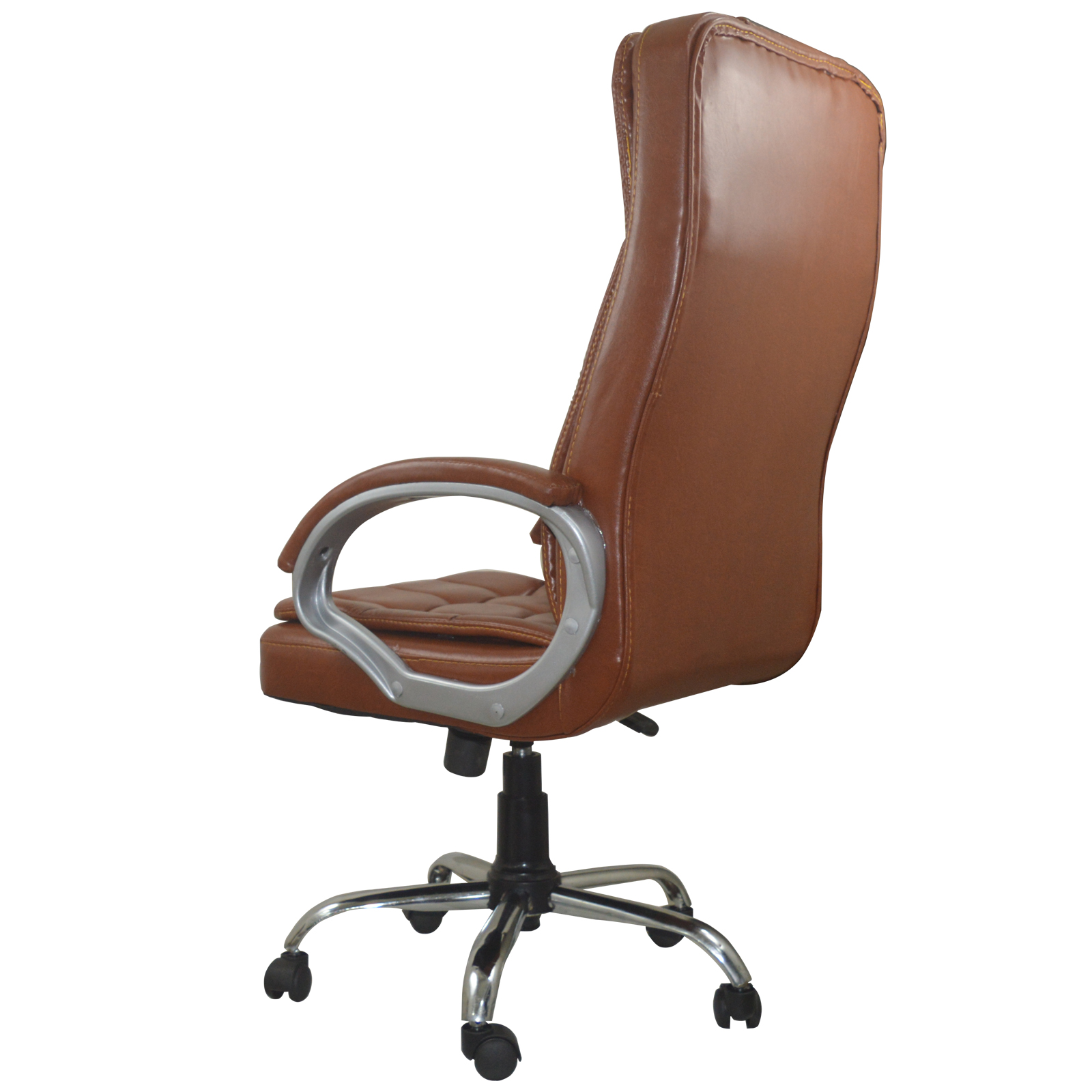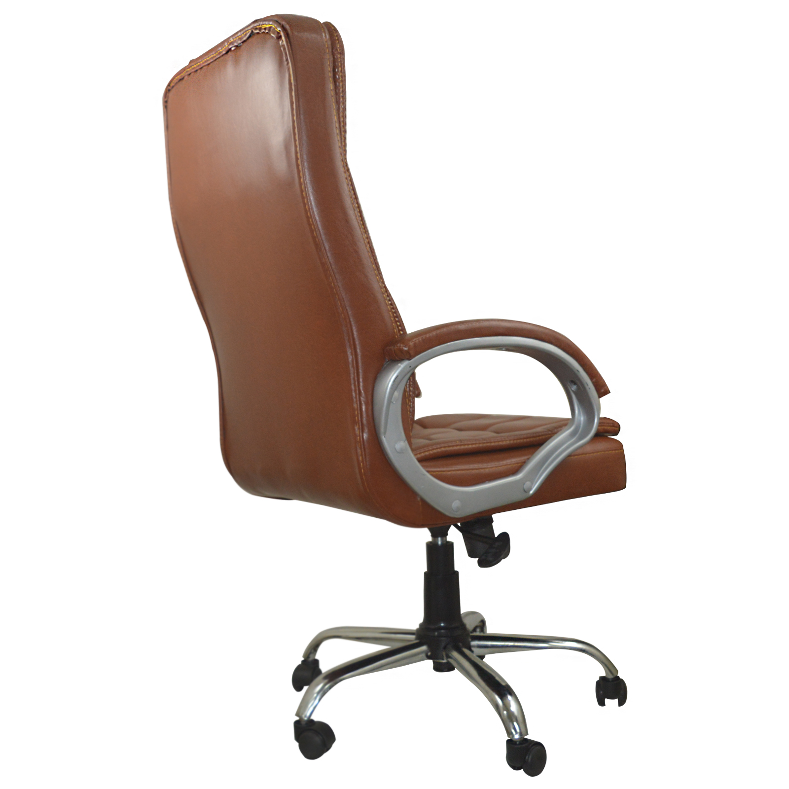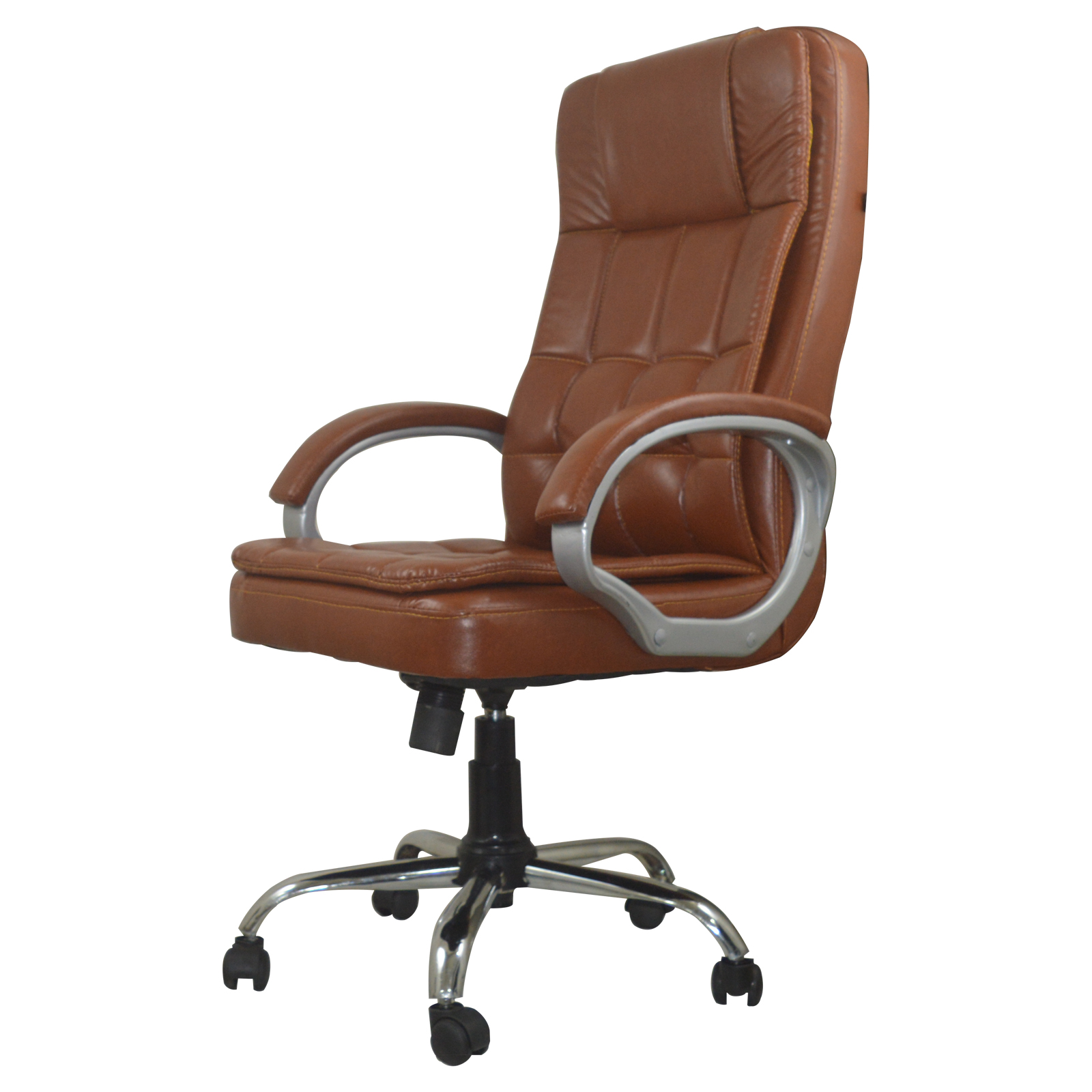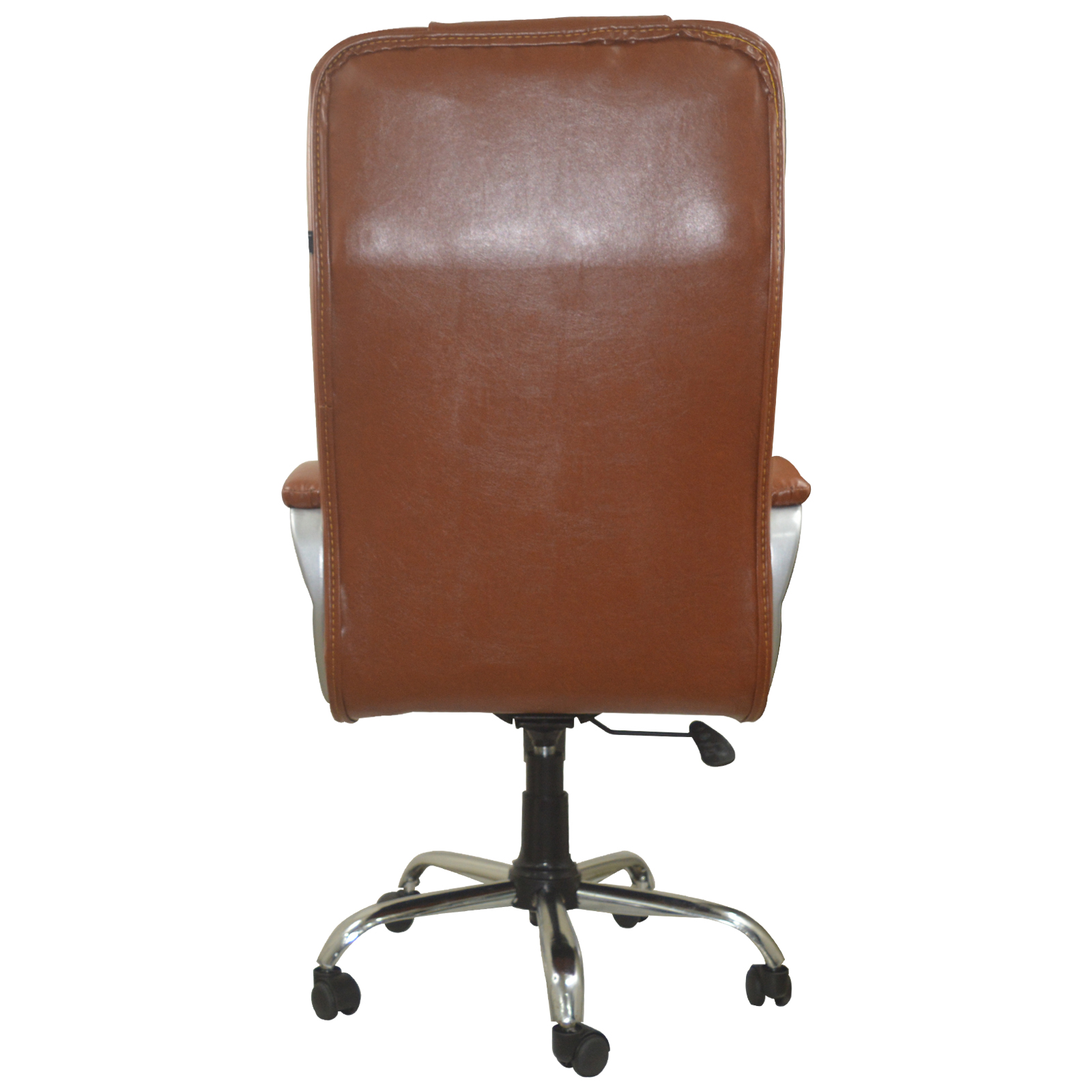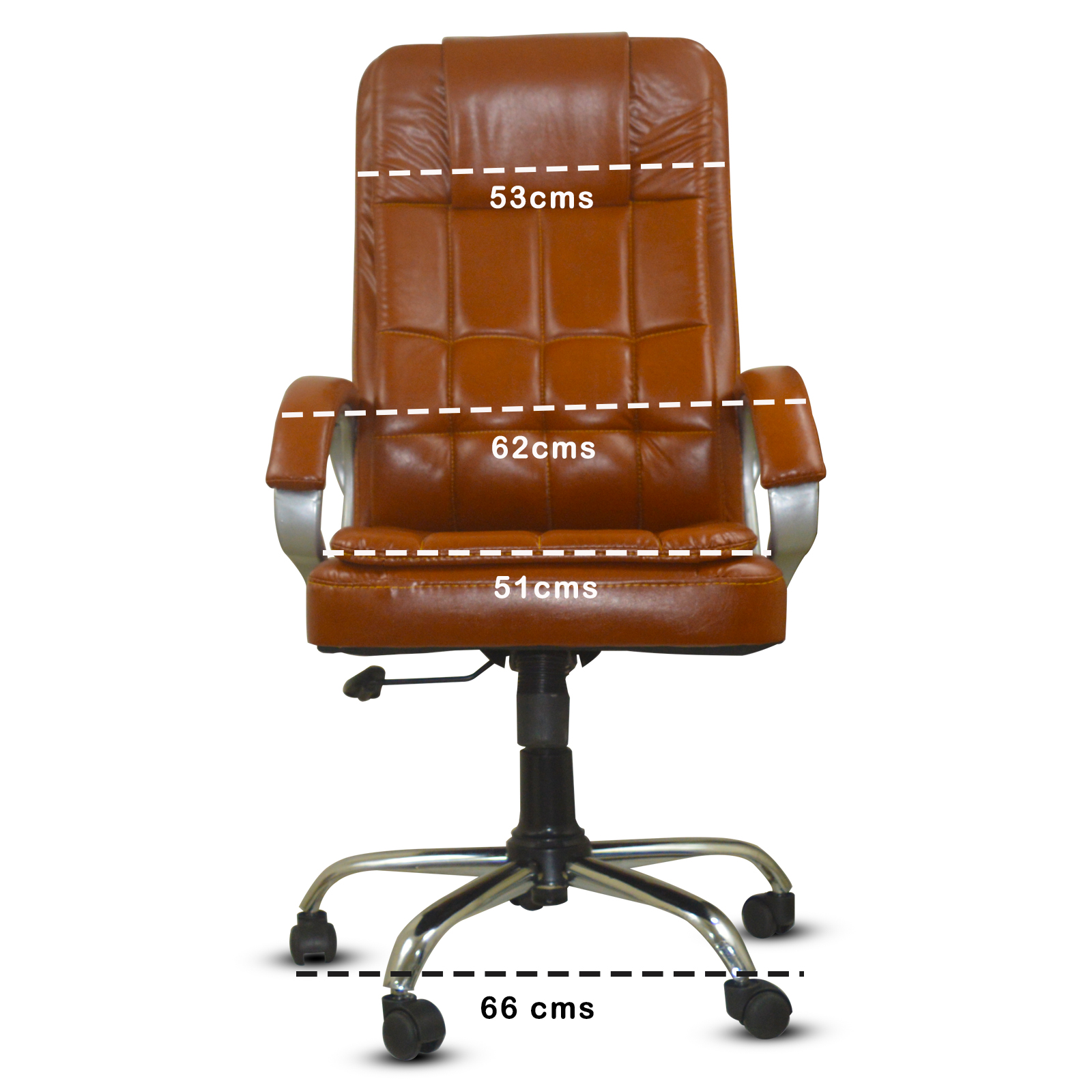 Specifications – Internal seat material : | Filled with – high density foam | Seat cover: leatherette | Color: choco brown | Size: high back | tilt lock | gas-lift: class 4 | Base: heavy duty metal base | Castors: nylon dual color wheels | Maximum weight capacity: up to 120 kgs | Height adjustment : 35-40 inches | Seat height : 19-23 inches | Seat width: 19 inches |Seat depth : 18 inches | Back height : 18 inches |